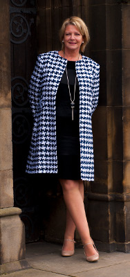 A Dogtooth Tweed collarless edge to edge knee length coat. Ideal for any Spring/Summer occasion.